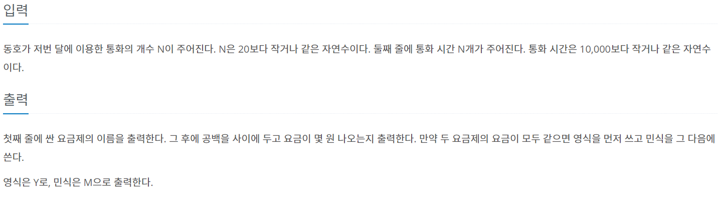 동호가 저번 달에 이용한 통화의 개수 N이 주어진다. N은 20보다 작거나 같은 자연수이다. 둘째 줄에 통화 시간 N개가 주어진다. 통화 시간은 10,000보다 작거나 같은 자연수이다.