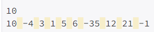 첫째 줄에 정수 n(1 ≤ n ≤ 100,000)이 주어지고 둘째 줄에는 n개의 정수로 이루어진 수열이 주어진다. 수는 -1,000보다 크거나 같고, 1,000보다 작거나 같은 정수이다.