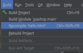 recompile을 하면 서버 다시 켜지 않아도 html에서 바뀐 내용 적용된다.