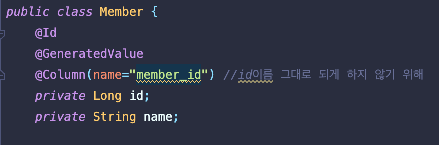 @JoinColumn(name="member_id") //주문한 회원에 대한 정보 매핑