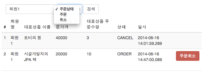 주문 목록 검색, 취소