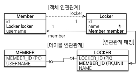 - 객체 양방향 관계는 참조가 2군데 있음. 둘중 테이블의 외래키를 관리할 곳을 지정해야함