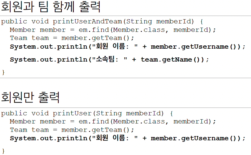 - 회원만 출력하는데 팀을 조회하는건 최적화가 안된거다. -> 낭비