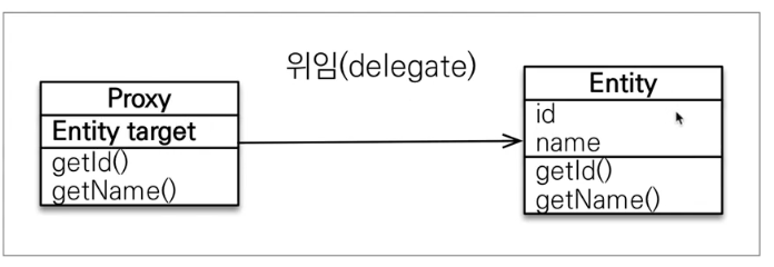 - 프록시 안에는 껍데기는 똑같은데 안에는 텅텅 비어있음