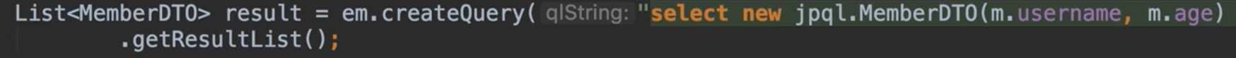 - SELECT new jpabook.jpql.UserDTO(m.username, m.age) FROM Member m