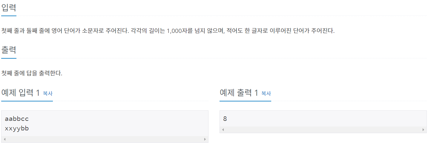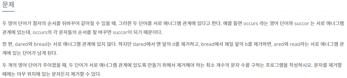 만약 배열을 순회하며 개수가 같지 않은 알파벳이 나온다? 그럼 그 차이만큼 카운트 증가!