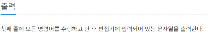 첫째 줄에는 초기에 편집기에 입력되어 있는 문자열이 주어진다. 이 문자열은 길이가 N이고, 영어 소문자로만 이루어져 있으며, 길이는 100,000을 넘지 않는다. 둘째 줄에는 입력할 명령어의 개수