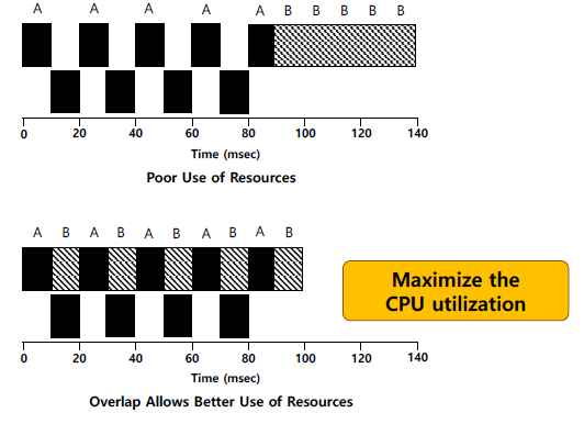 사이 사이 일을 끼워넣어 CPU utilization을 극대화