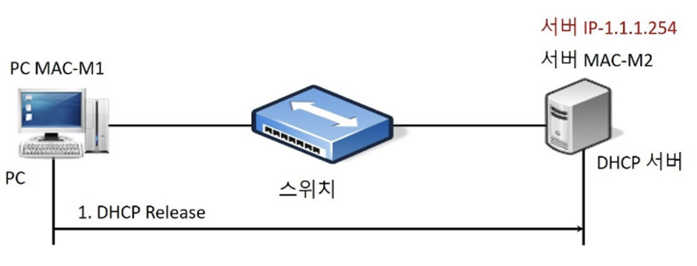 - Client가 DHCP 서버에게 IP주소와 자원을 반납을 한다.